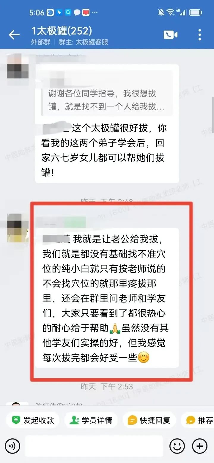 就在我苦苦寻觅的时候,一次偶然的机会,我看到了陈宏玮老师的太极罐疗法。我当时就眼前一亮,我抓紧时间看完线上课,就给我的妹妹拔罐!